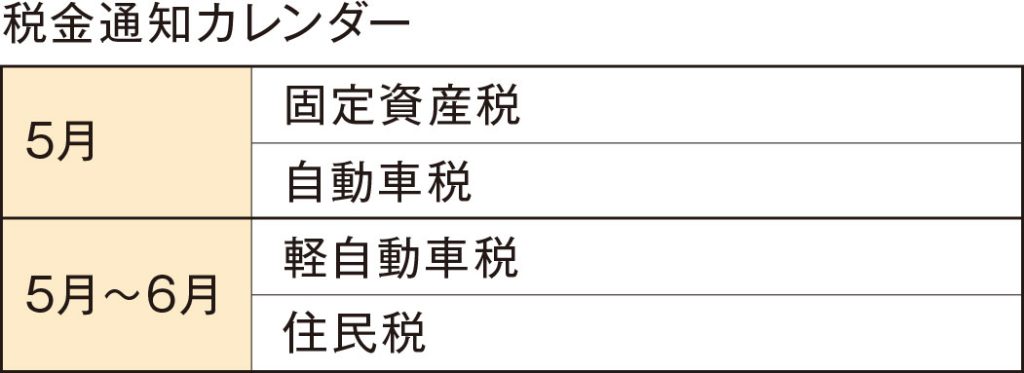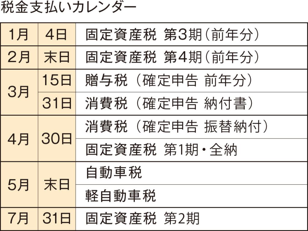 税金の支払い期日はおおむね表の日程になります。